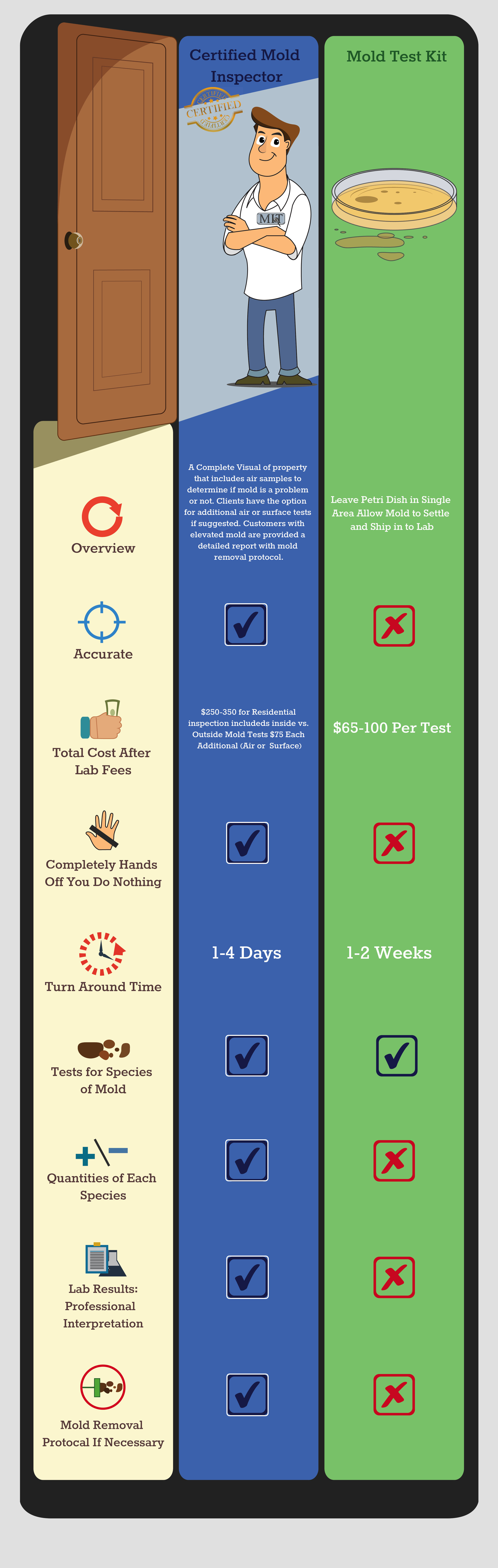 Even if you do decide to spend the decide to spend the extra money to have your kits sent into a lab for analysis, the maker of this product sends you a generic lab report and zero customer service. We deal with customers all the time that try to save money by getting a kit instead of hiring an inspector and end up with a generic lab report showing they have mold and no idea what to do about the problem. At the end of the day, people who actually have serious issues pay for this kit and have to hire an inspector to perform legitimate testing to get real advice about their homes problems.